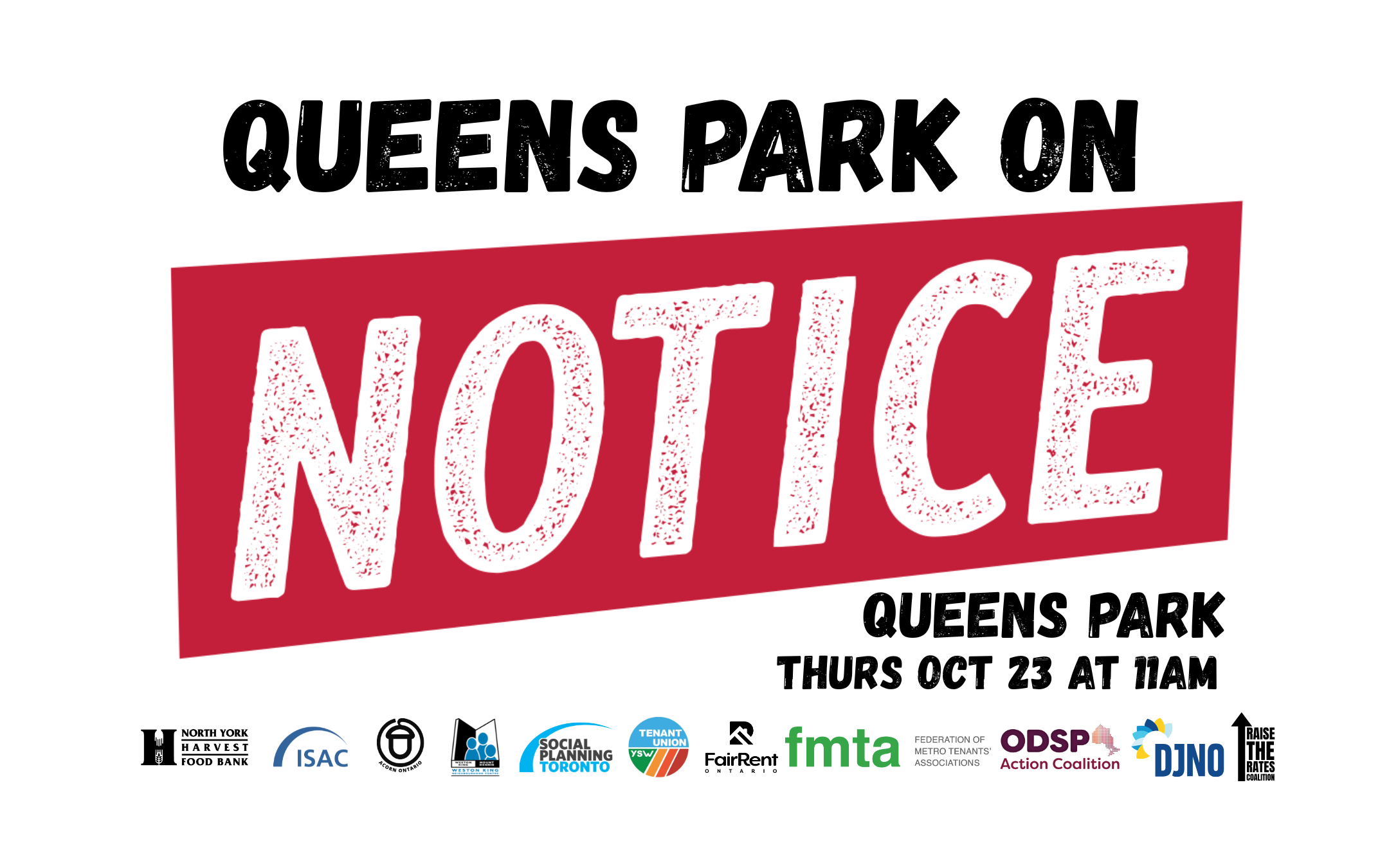 This Thursday October 23rd, join us on the bus to put Queen's Park on Notice and demand the change we need: freeze the rent; raise the rates and raise wages!